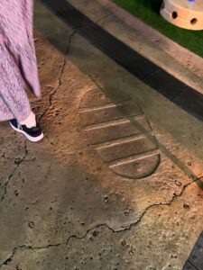 バズの足跡でっかいな~ いやバスがでかいんじゃなくて私達が小人になってるのか