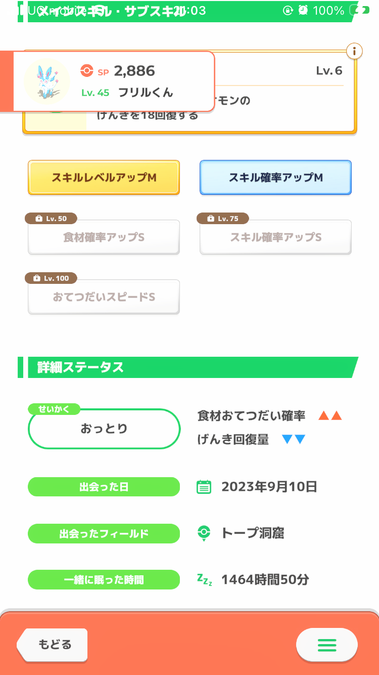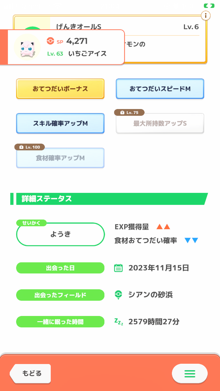 毎日一緒に寝て、2000時間のおやすみリボン(おてつだい時間12%短縮)もついたし、だいたい一日3回、調子が良ければ4回スキルを発動してくれる